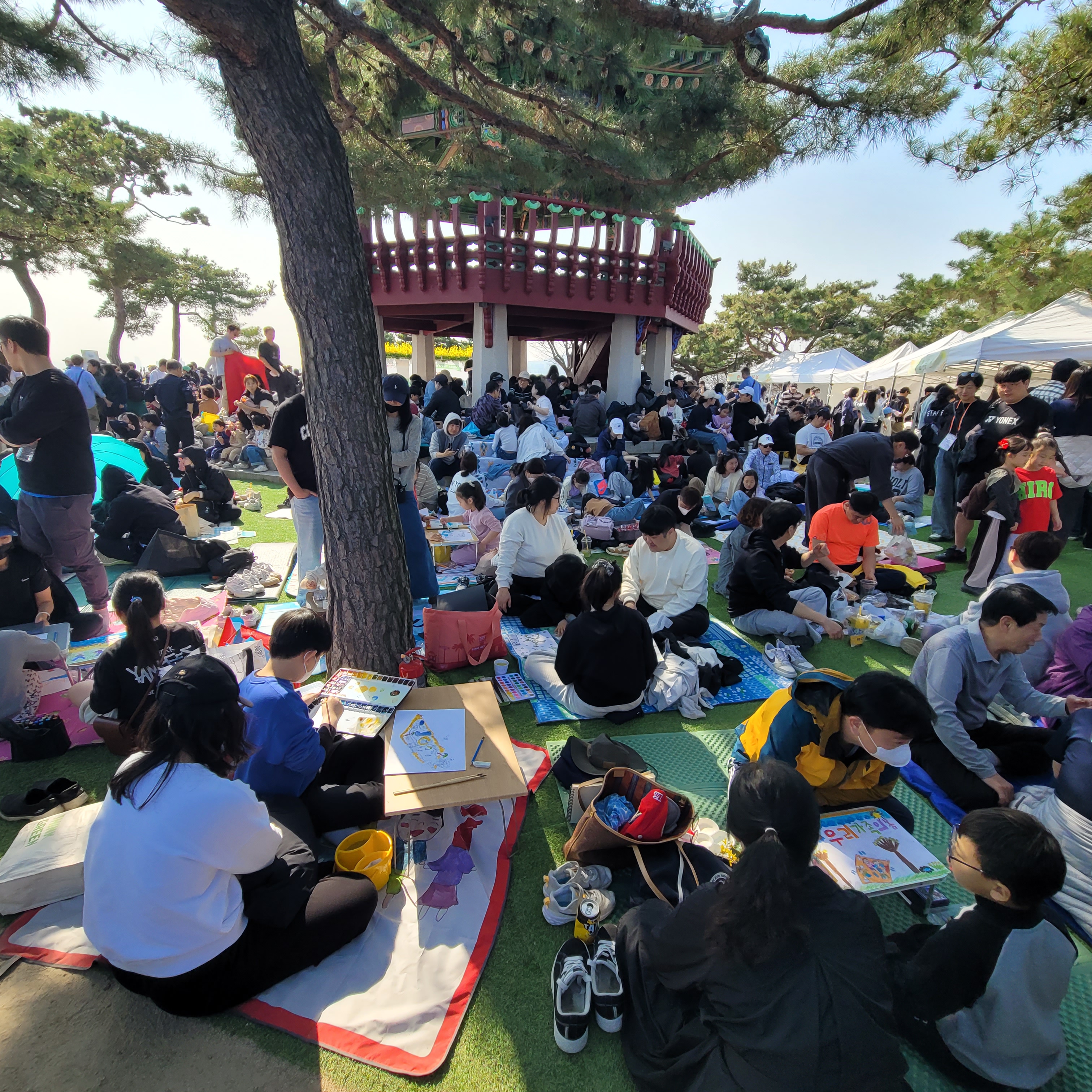 응봉산 팔각정에 올라와보니 글짓기 그림대회 등 체험행사들이 열리고