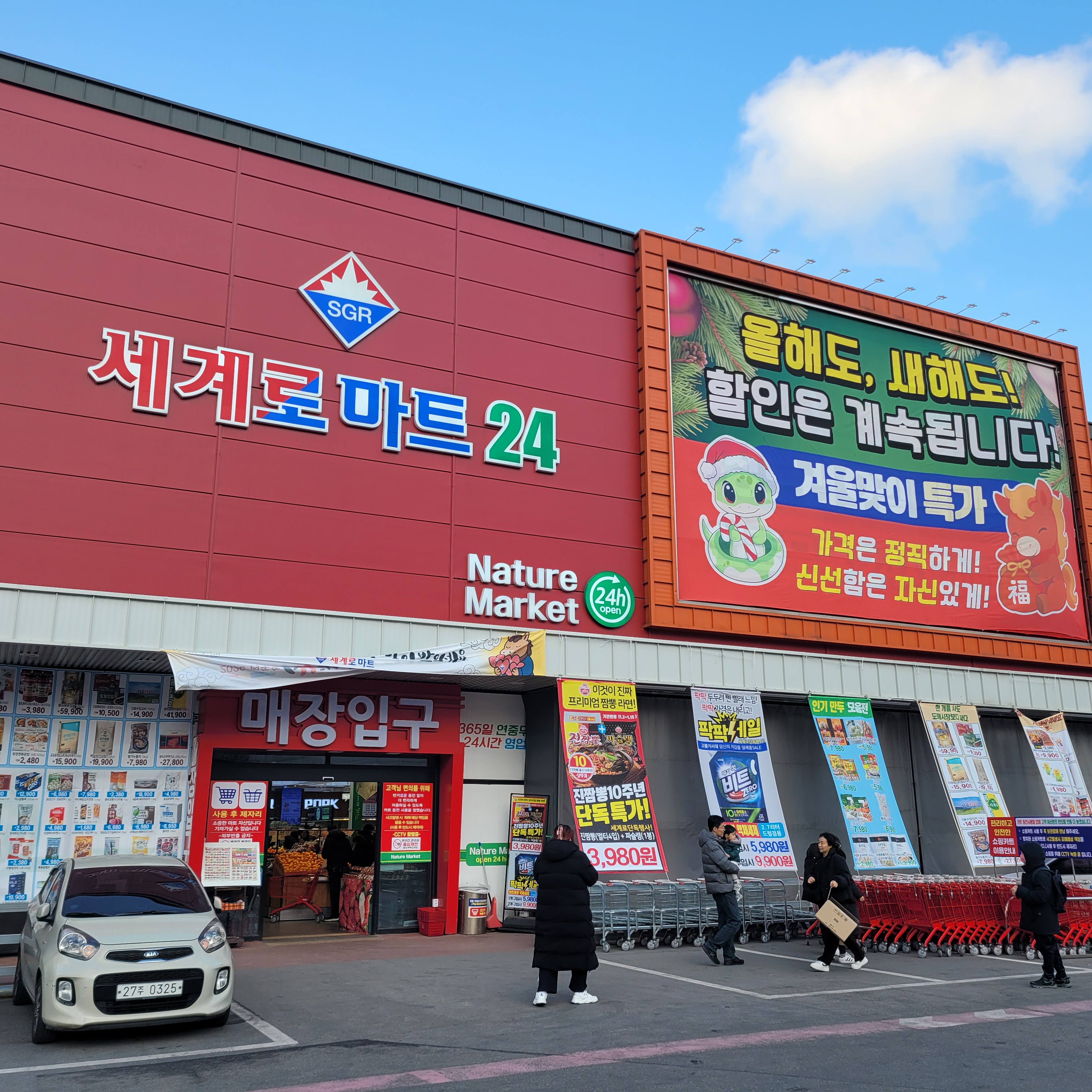 신한국 황대장입니다. 오늘로서 1월도 중반으로 접어들었네요. 오늘은 지난 주말에 이마트 트레이더스 인천 송림점 다녀온 뒤에 다녀왔던 세계로마트24 간석점 풍경 사진들 올리겠습니다. 세계로마트24 간석점은 홈플러스 간석점 맞은편에 있는 마트인데 지난 2023년 11월 이후 오랜만에 다시 찾아갔었네요. 이곳에도 주말이라서 사람들이 꽤 많이들 찾아왔었더라고요. 생각보다 규모도 있고 물건들도 많이들 진열되어 있었으니까요. 마트구경 마친 뒤에는 십정동쪽으로 걸어와서 장터쇼핑 십정점 맞은편에서 버스타고 동암역까지 간 뒤에 전철타고 집으로 왔고요. 돌아오는 길에 밖에 눈이 좀 내리고 있었네요. 그럼 전 이만 글 마칩니다. 남은 한주도 건강 잘 챙기시고 행복하세요^^ 대한민국 황대장