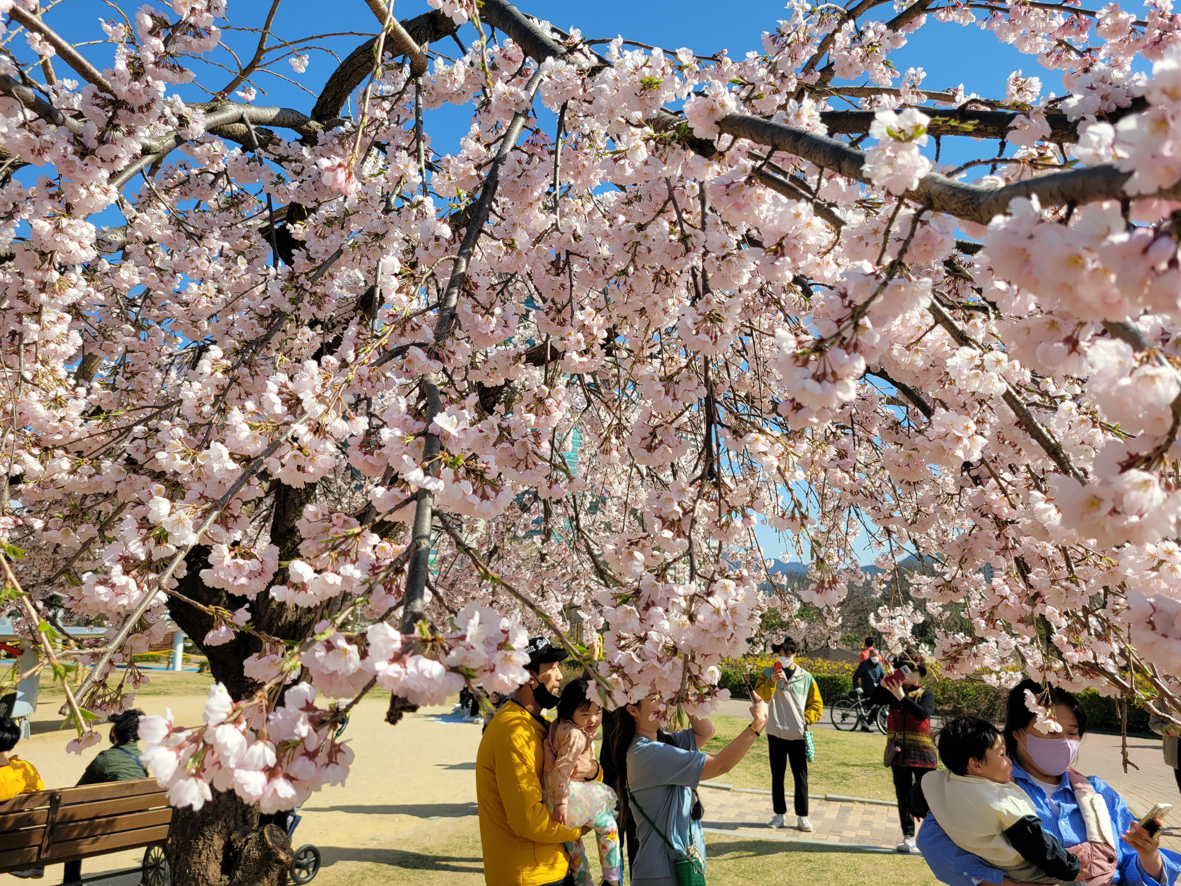 만개를 했네요. 그래서인지 봄꽃 배경으로 사진을 찍는 사람들이 꽤 많았고요.