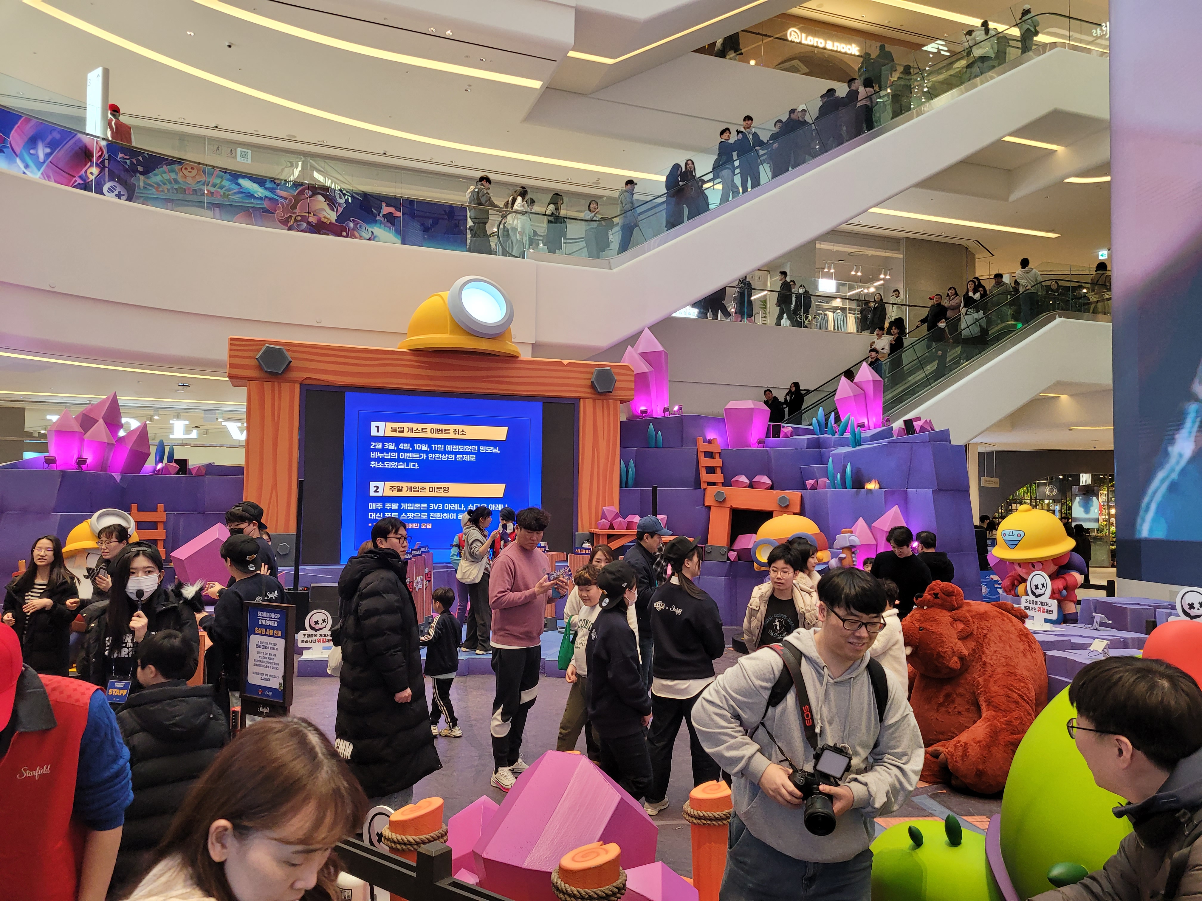 사람들로 건물 전체가 인산인해를 이루고 있었네요. 특히 1층 메인 공간은 브롤 스타즈 등