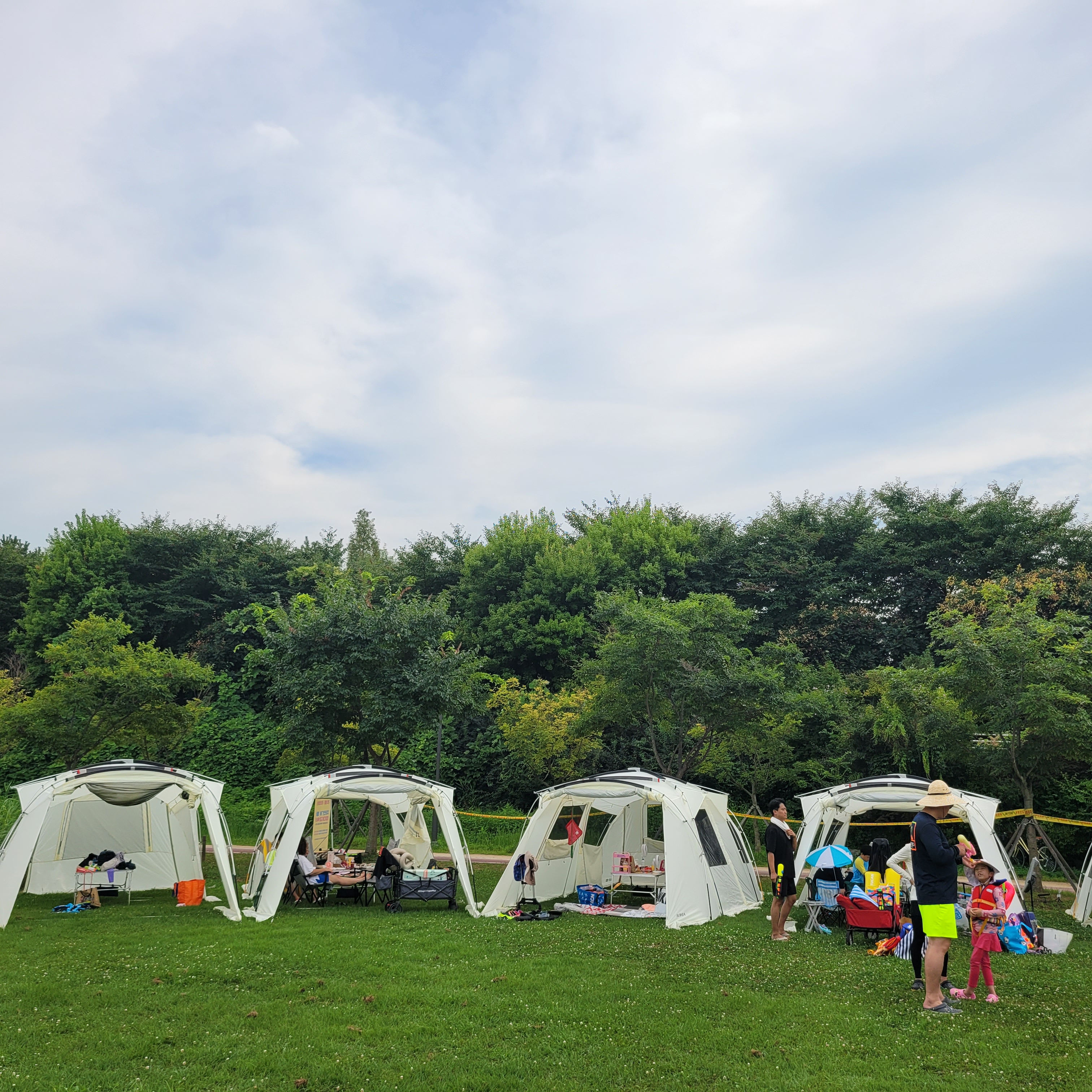 캠핑장분위기 낼 수 있는 캠핑시설 텐트들이 자리잡고 있었네요.