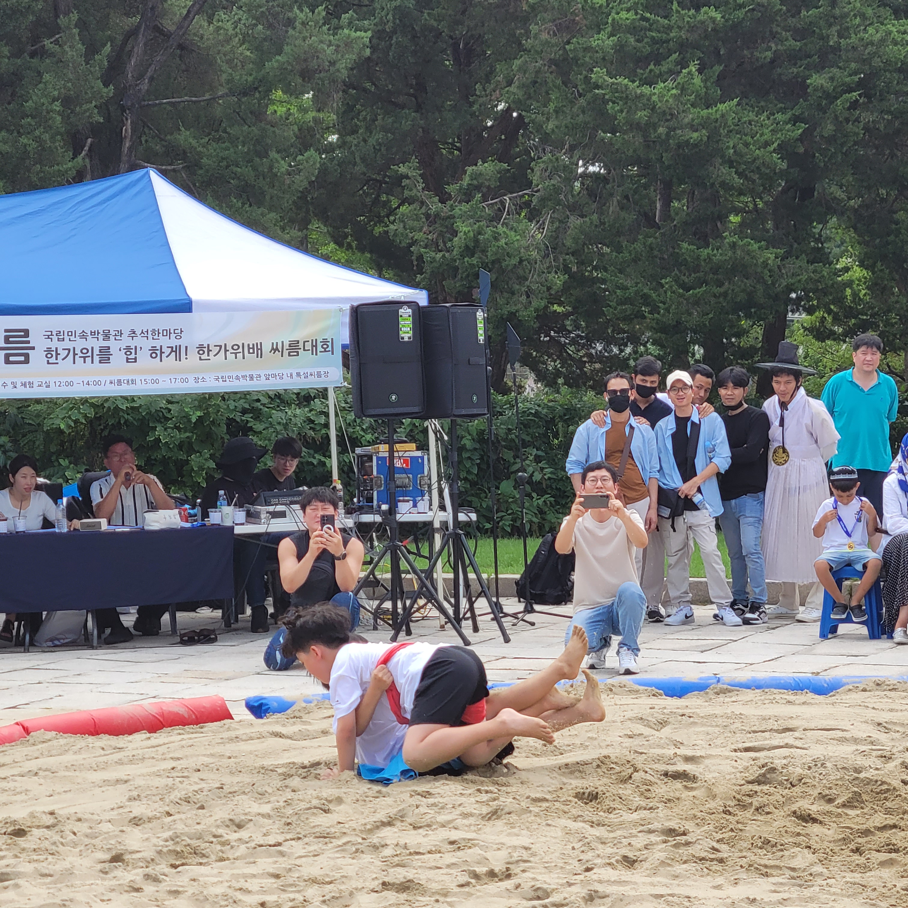탈춤도 구경하고 애들 씨름하는 것도 구경하고 민박 소담마켓 구경도 하는