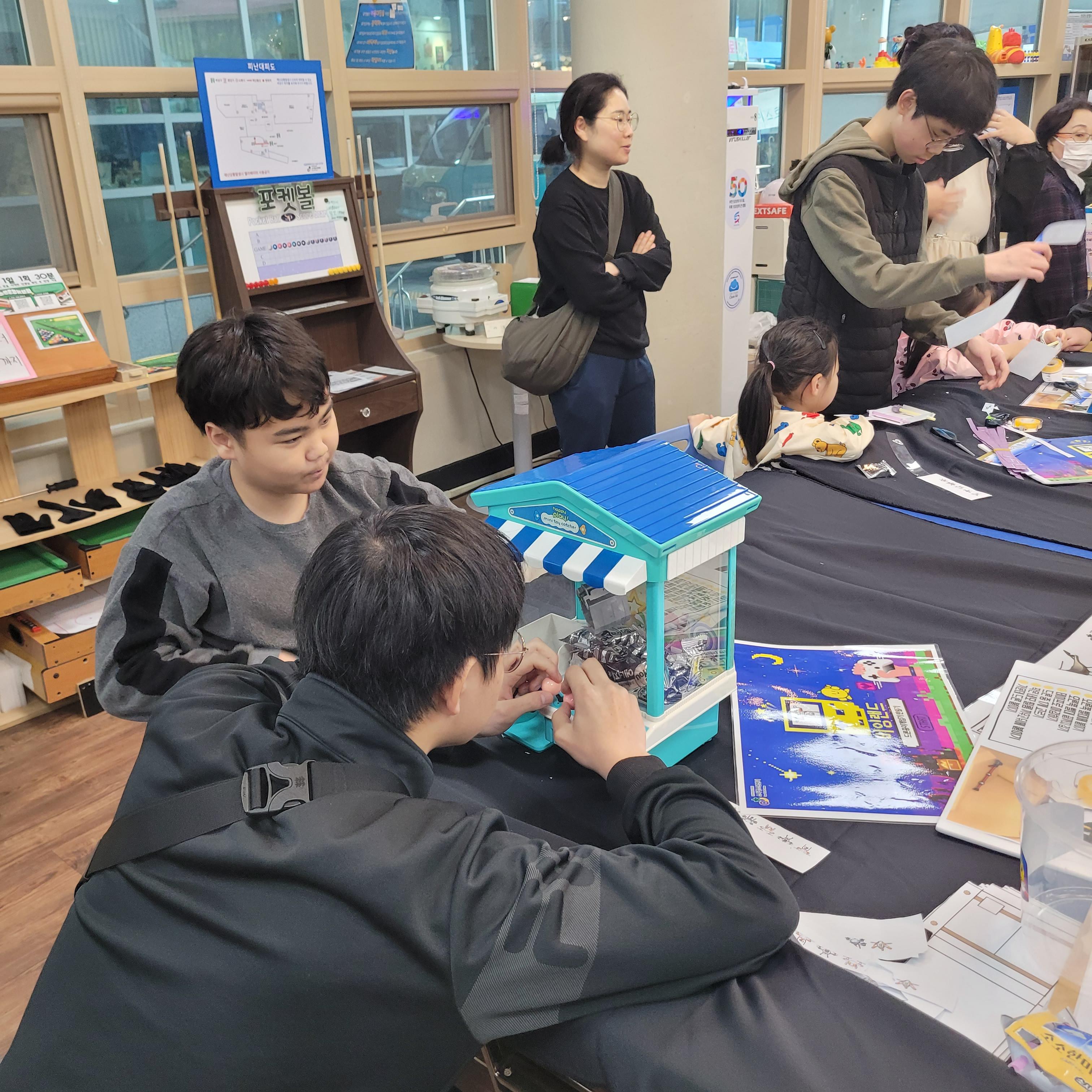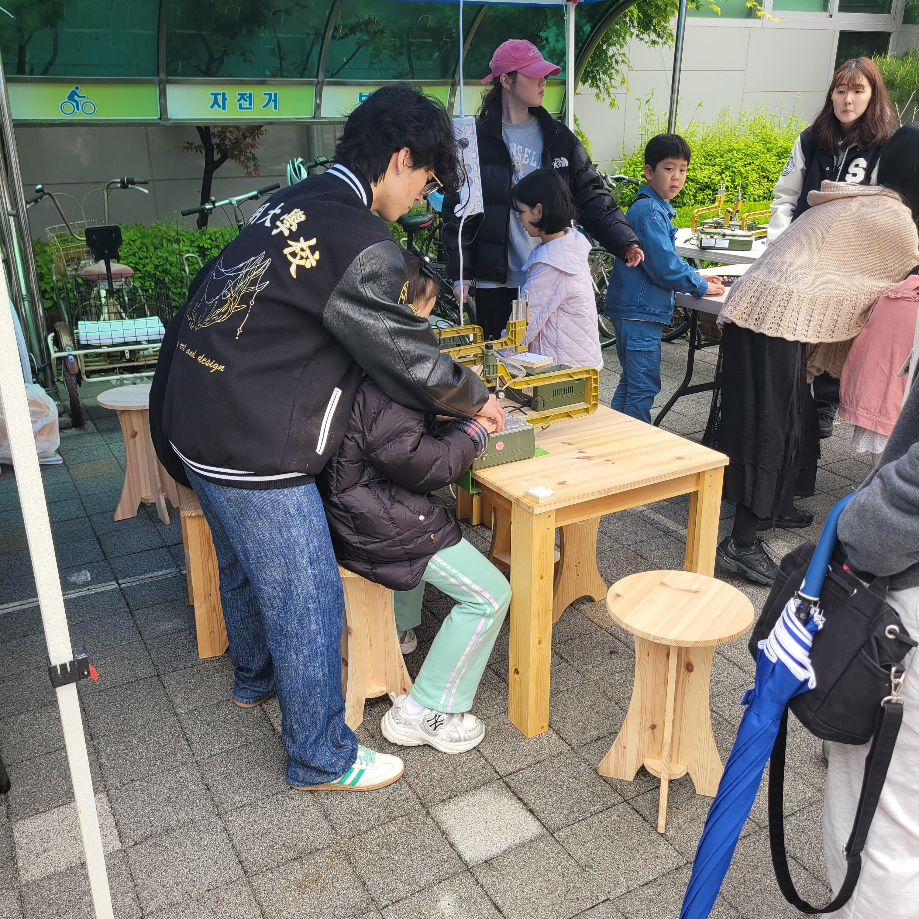 소사청소년센터 1층 앞마당에서는 각종 공예체험과 나무자동차