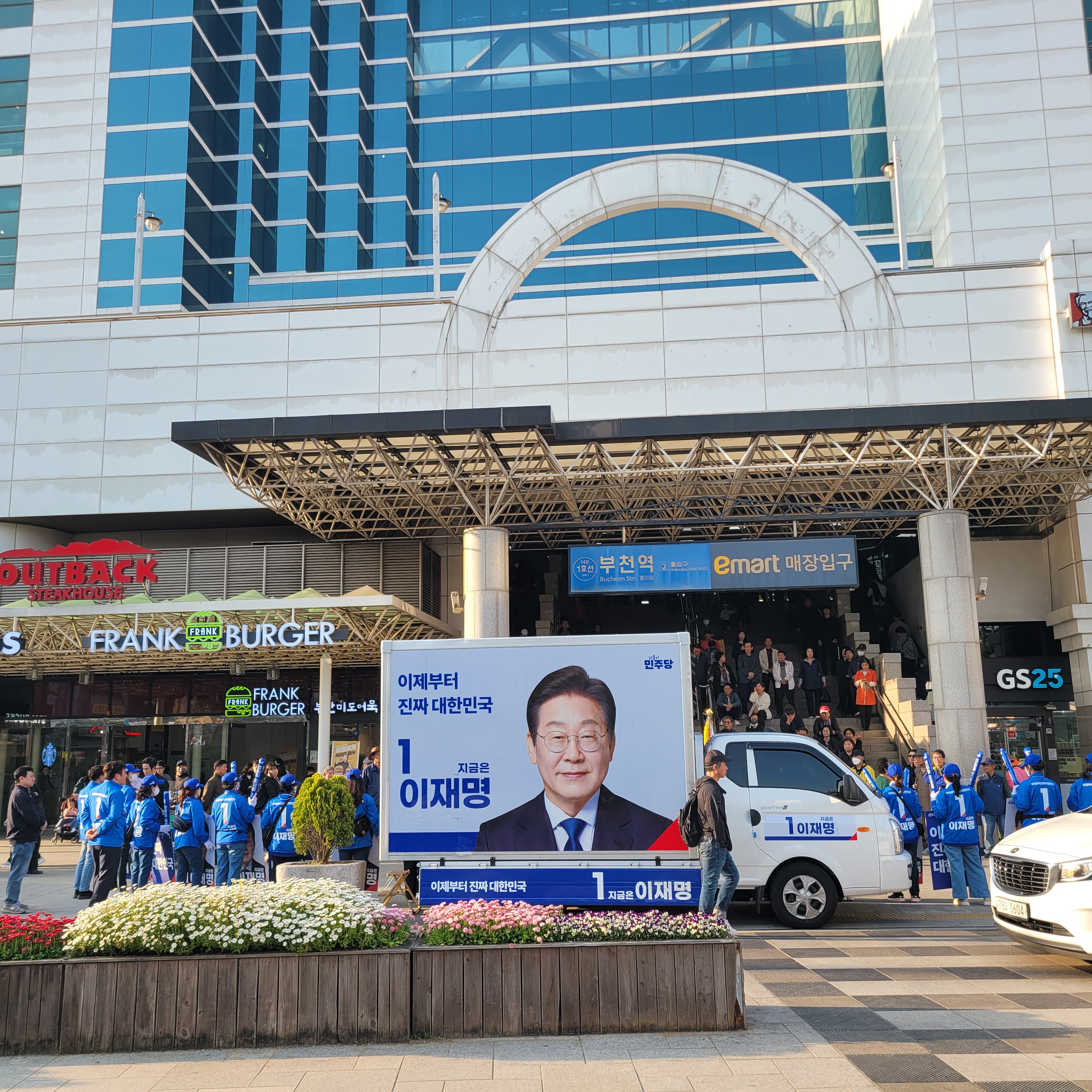 이틀 전에는 부천남부역에서 더불어민주당 대선후보 이재명을