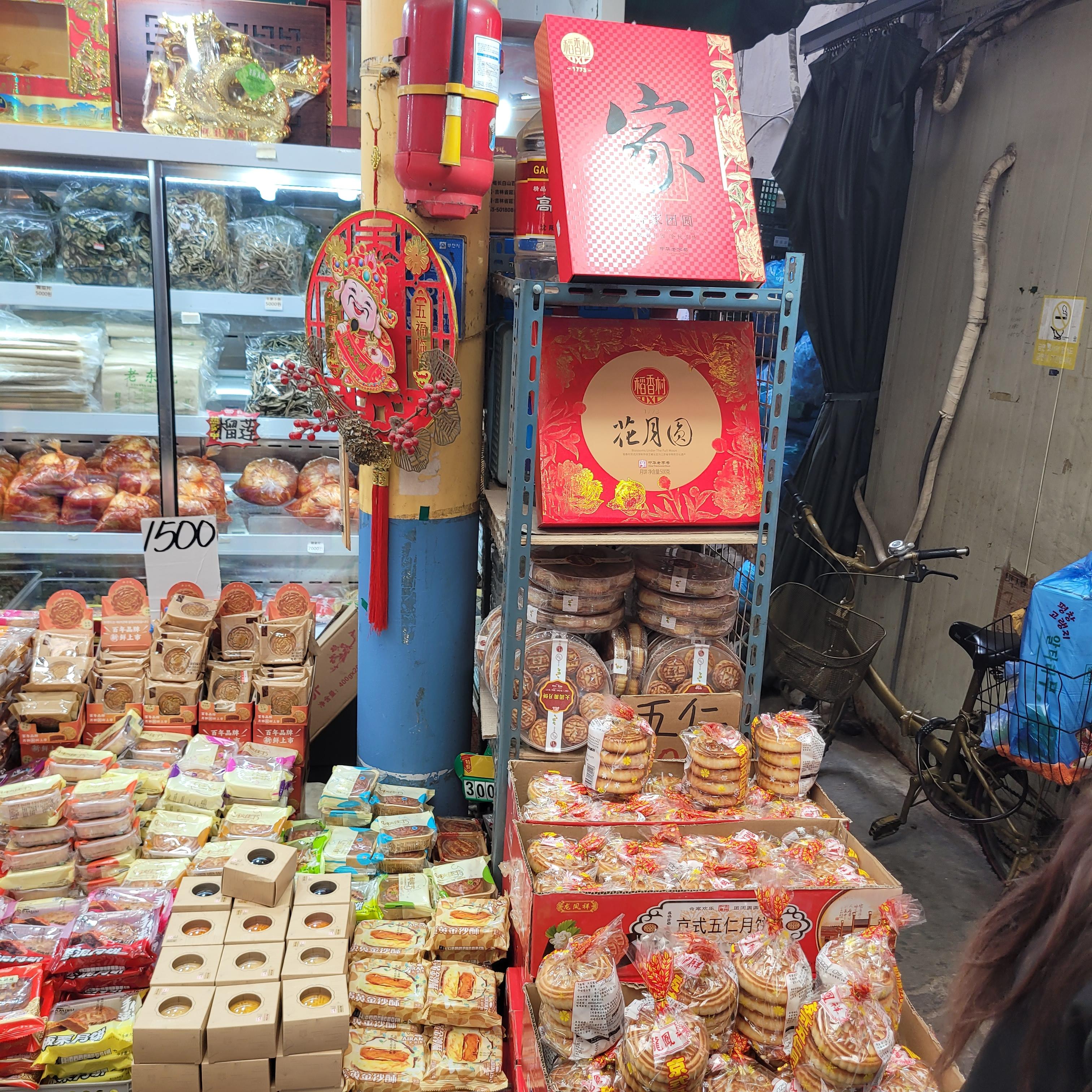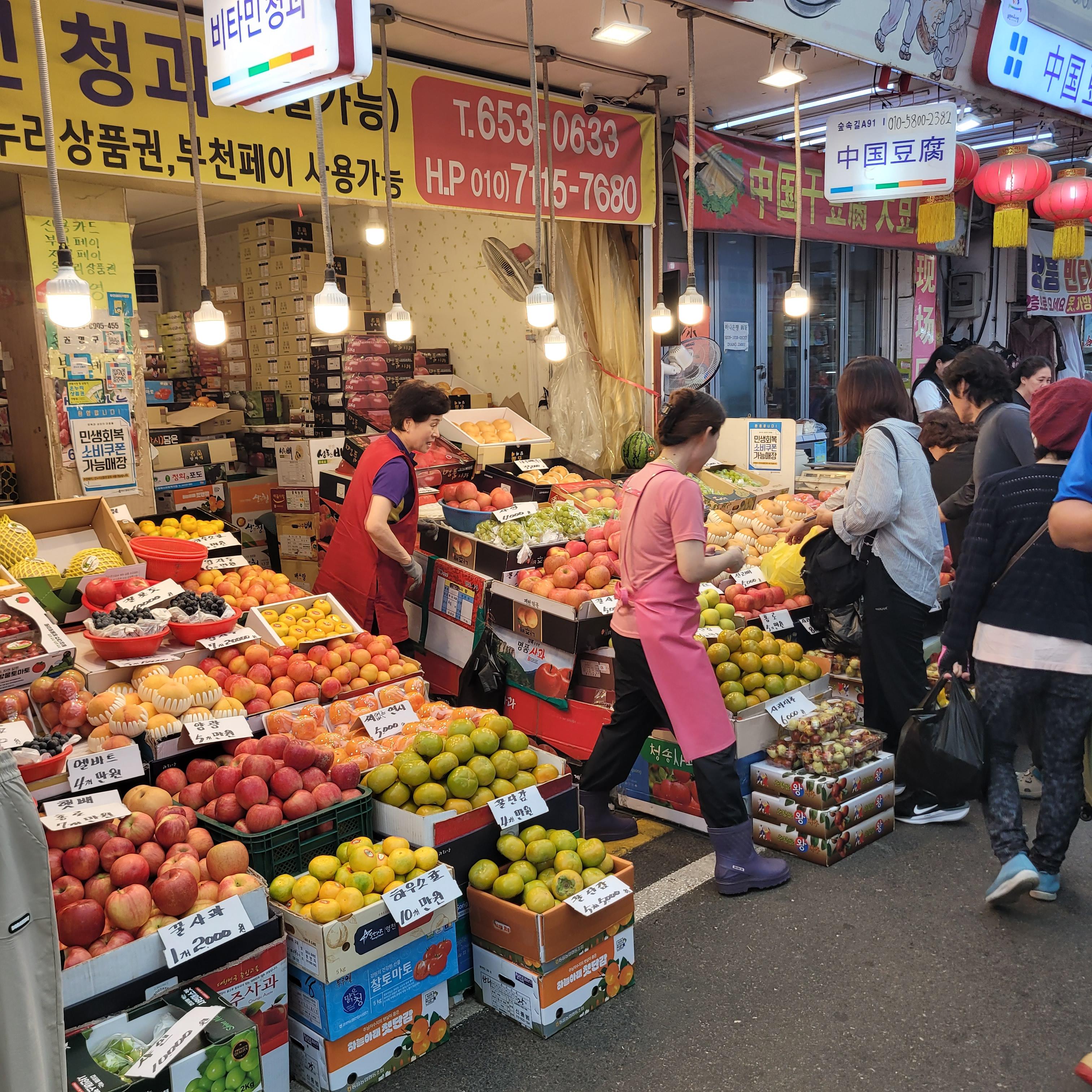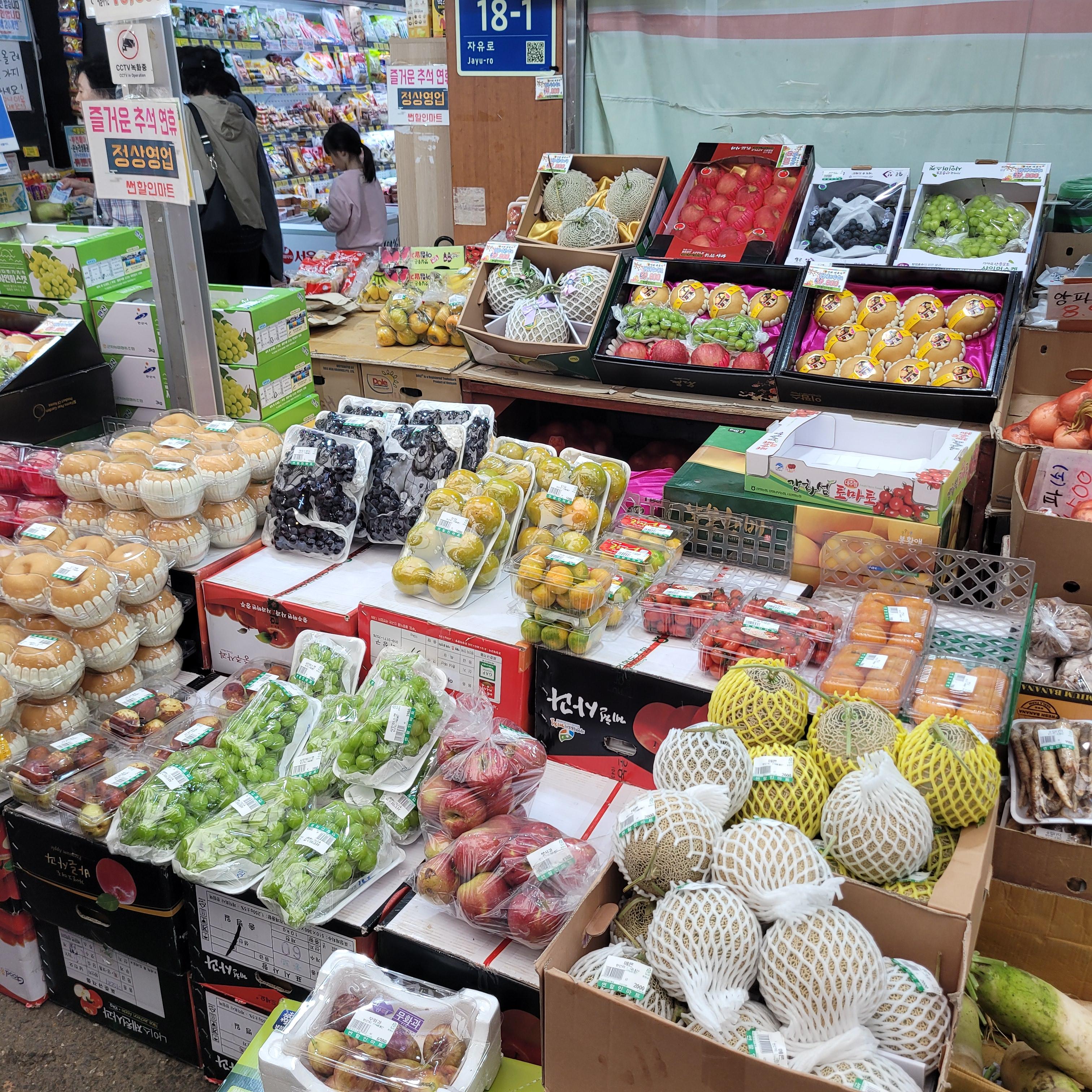 과일들을 파는 곳들도 있었고 추석에 먹을 송편 떡들을 파는 곳도