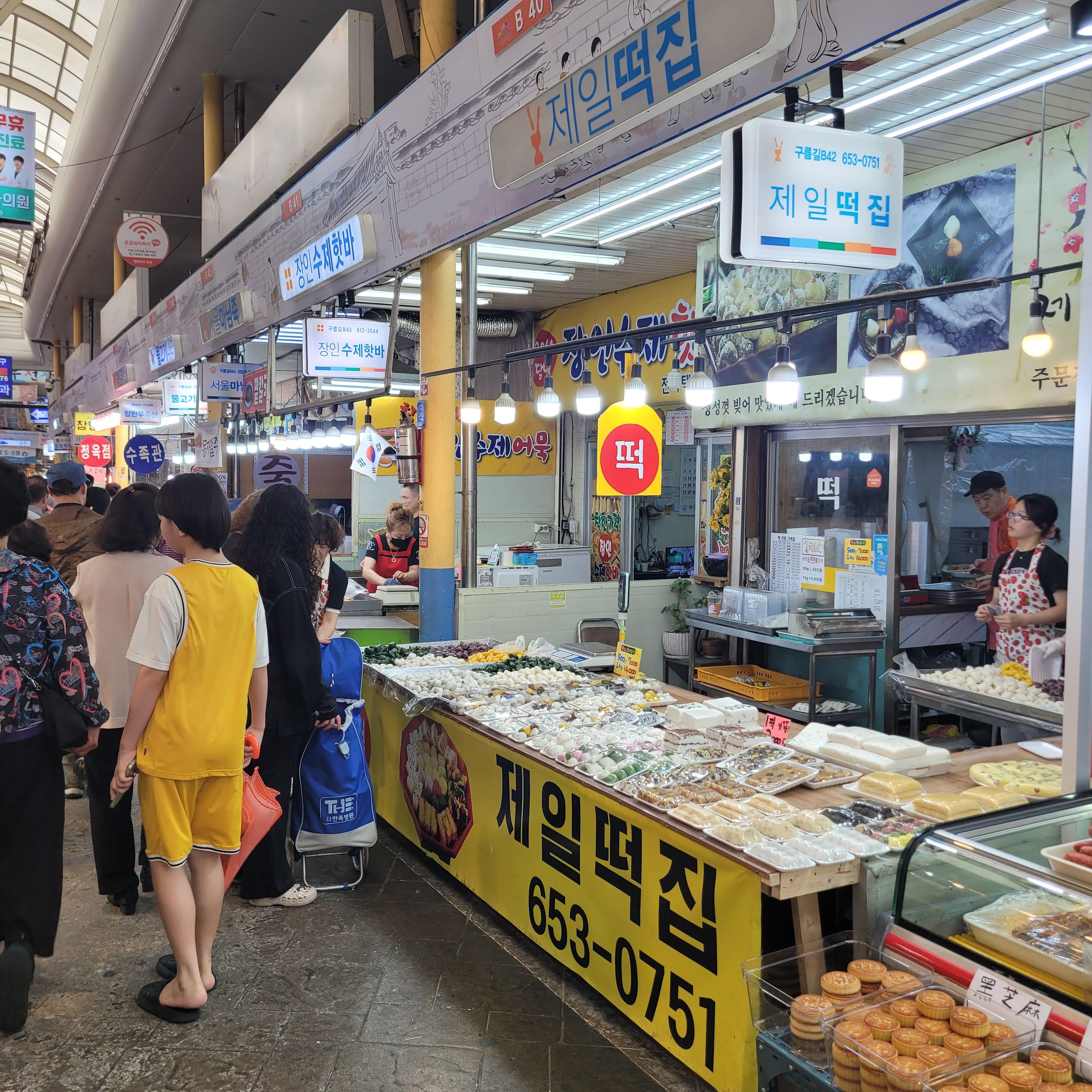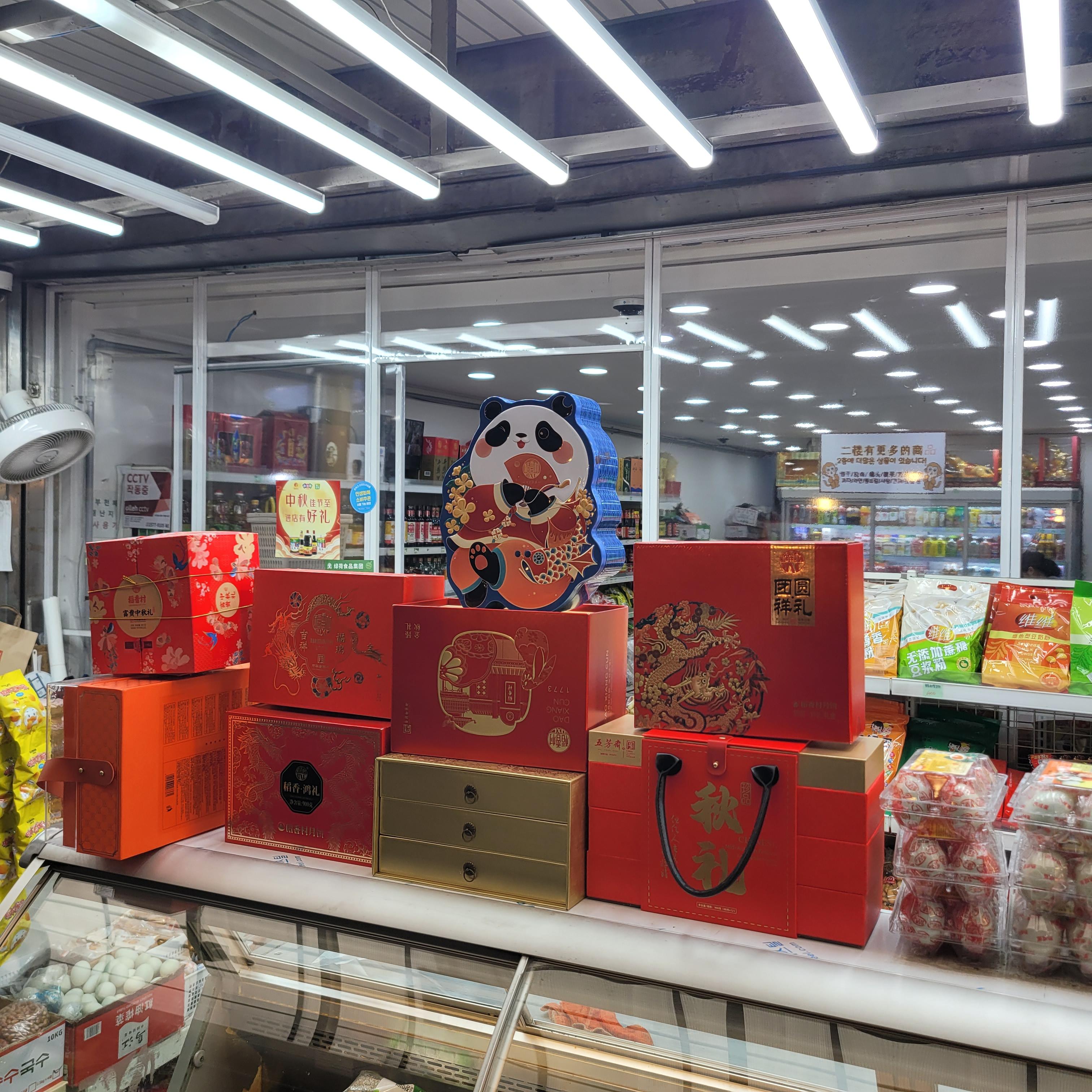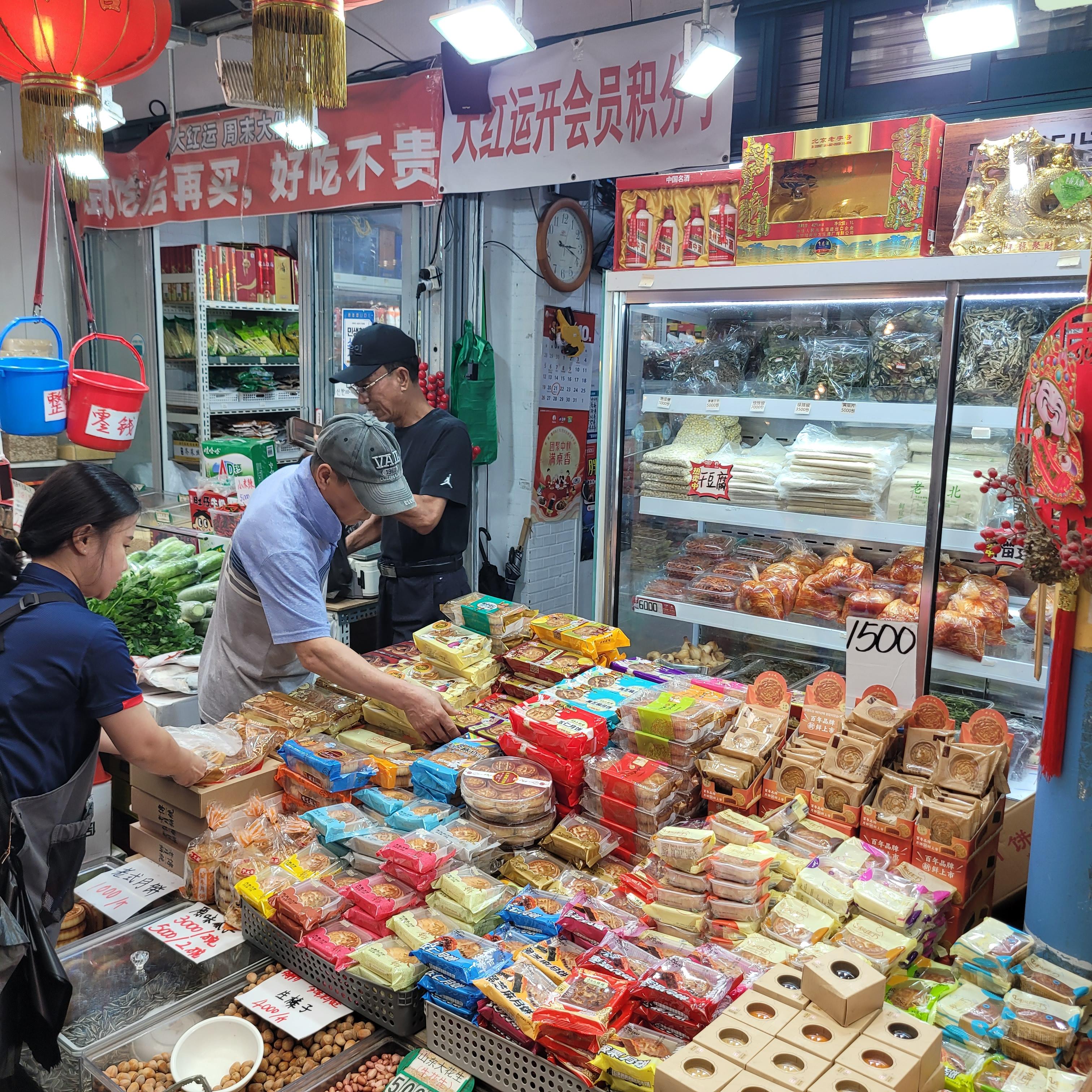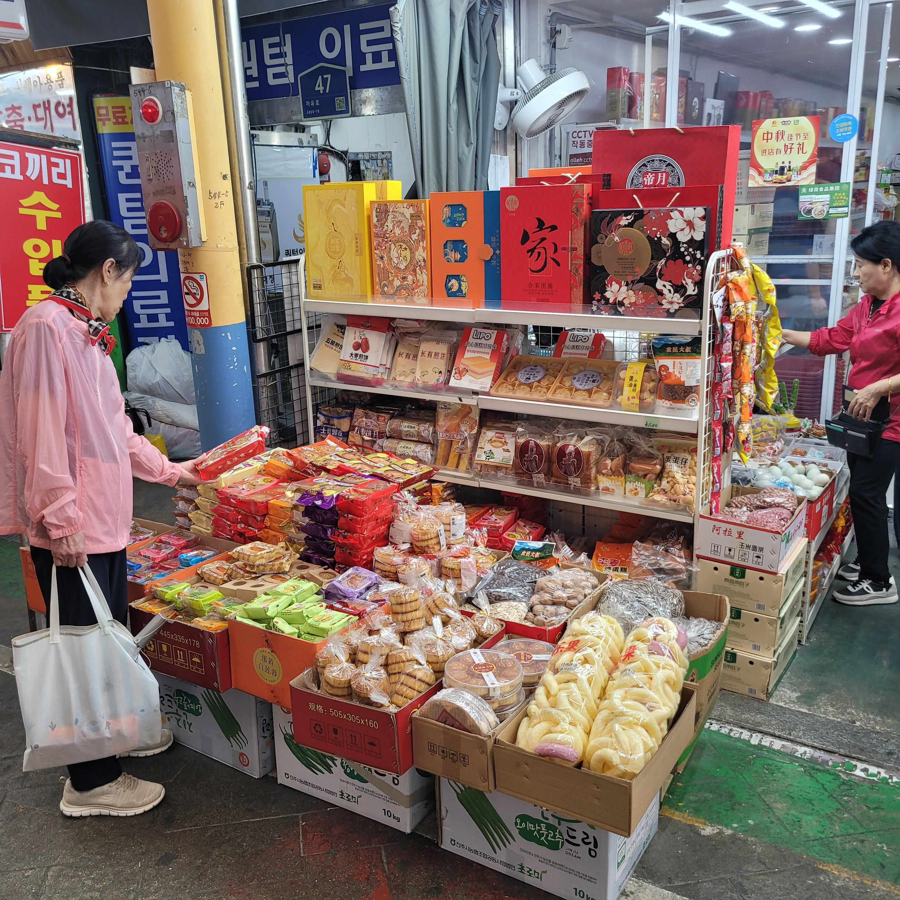 과일들을 파는 곳들도 있었고 추석에 먹을 송편 떡들을 파는 곳도