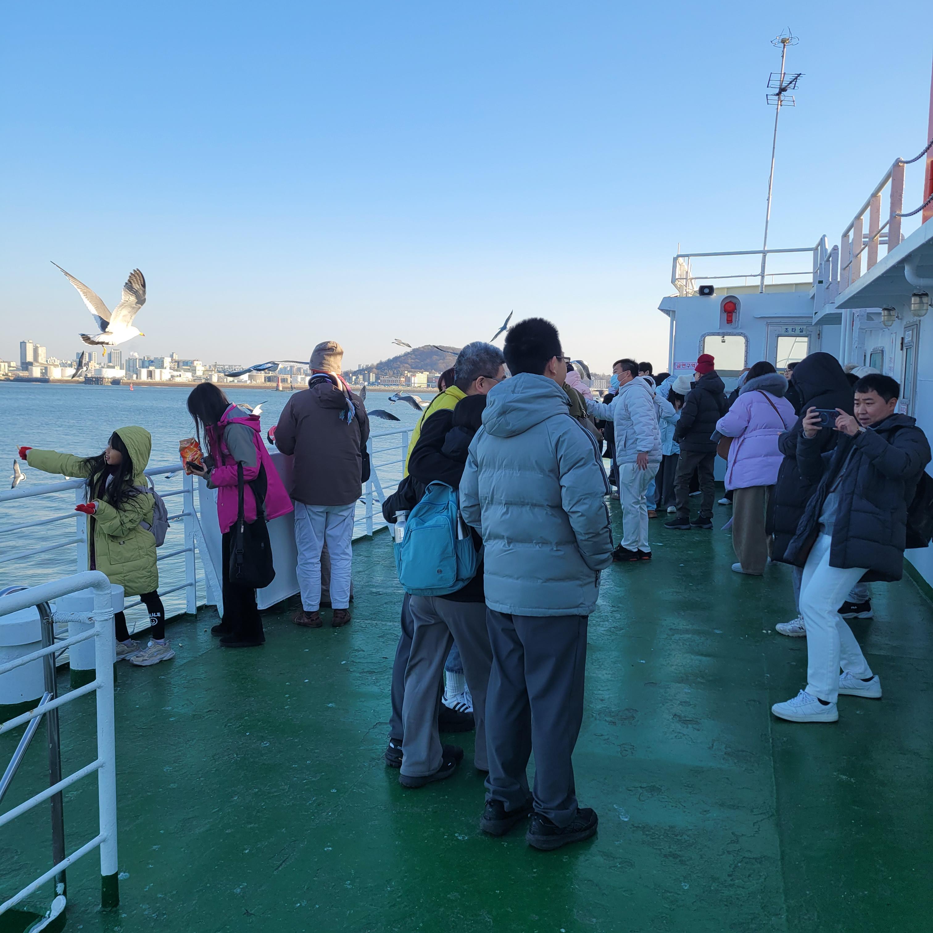 돌아갈 때는 사람들이 많이 나와서 갈매기들에게 새우깡도 주고